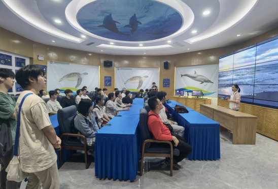 在雷州珍稀海洋生物国家级自然保护区,学生们沉浸式感受了海洋生态保护的实践魅力。在标本馆,保护区工作人员重点讲解了珍稀海洋生物的保护技术与管理体系。结合海洋生态方向课程知识,引导学生思考人类活动与海洋生态平衡的辩证关系,将生态保护理念融入实践教学,强化了学生的海洋环境保护意识与社会责任感。